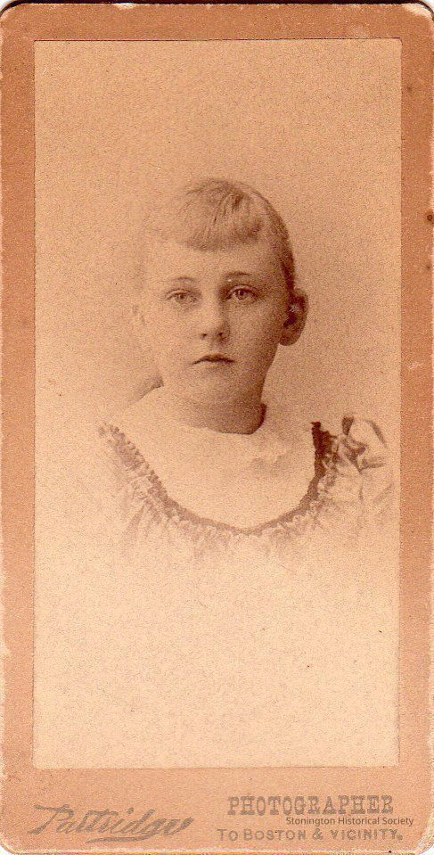 black and white portrait, mounted on board, of Helen Adams (Paffard) as a young girl, taken by Partridge, Boston, July 1890.Collection