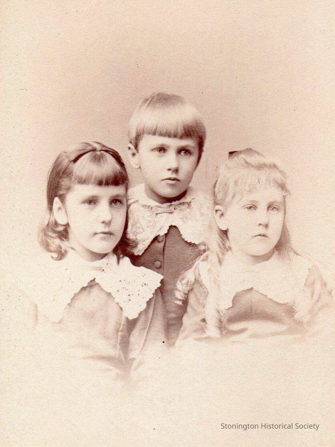 photograph portrait, mounted on board, the children of James and Emma Adams - left to right: Eliza, Parmelia and Helen Adams