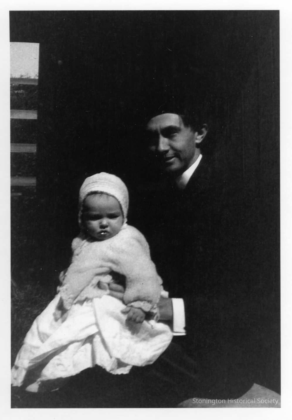 Arthur Pickett Anderson holding his son Robert P. Anderson on his knee.