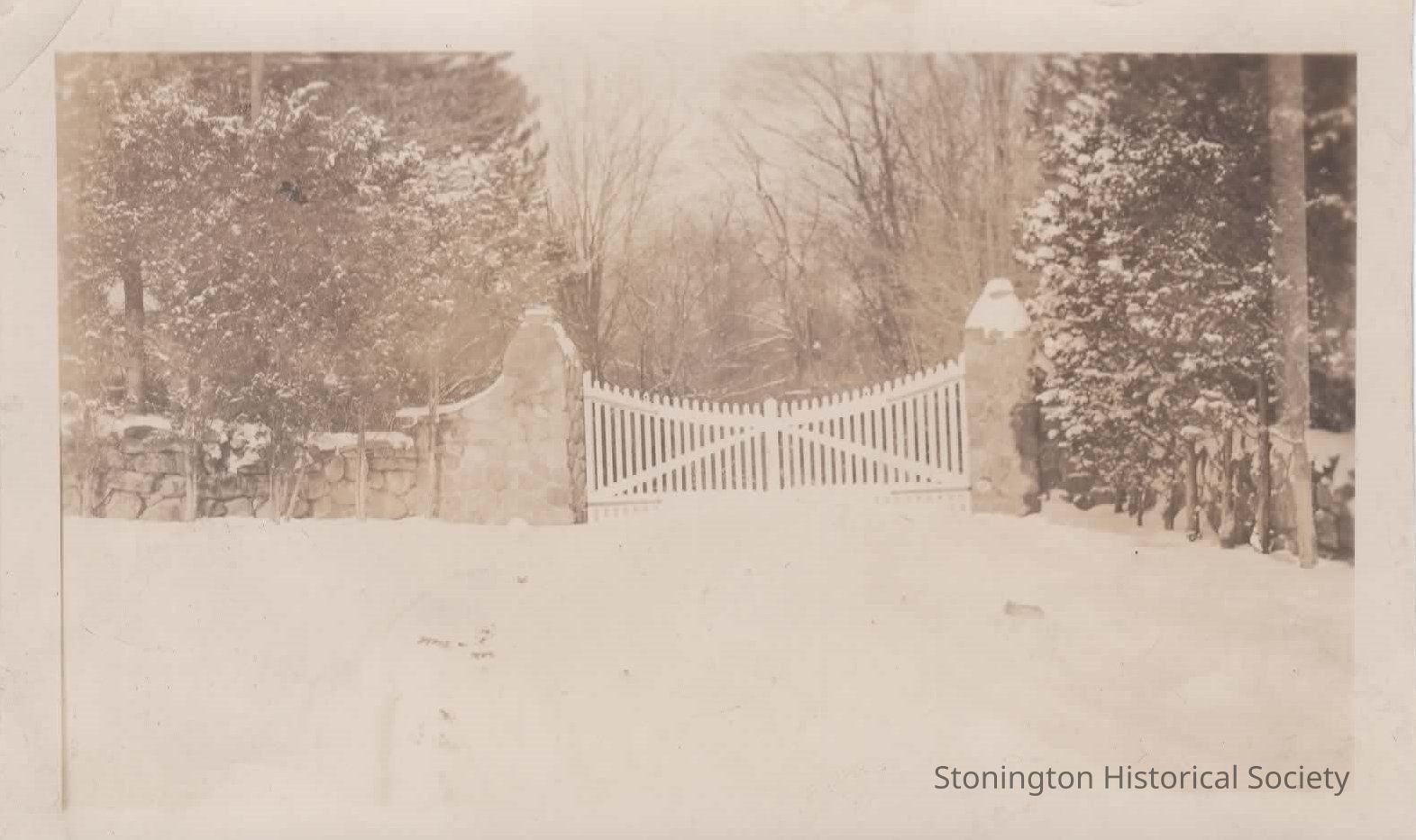 black and white photograph of the gated entrance to the Shawondasee Estate, c. early 1920s
