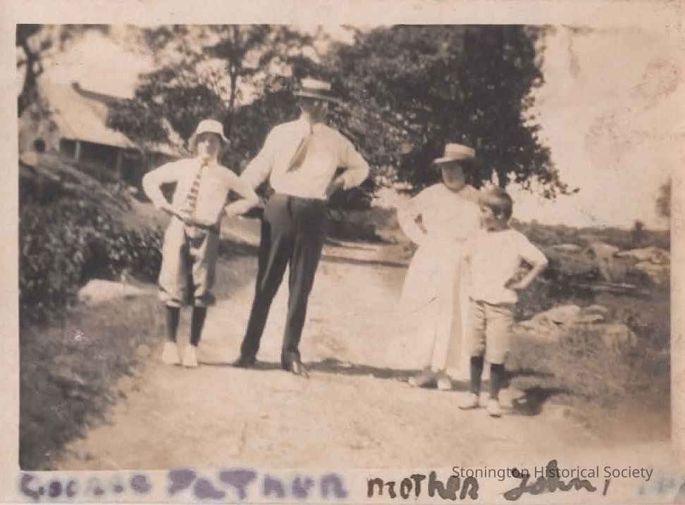 black and white snapshot "George, Father, Mother, John," taken from the Helen Streeter Photograph Album, 1916Collection