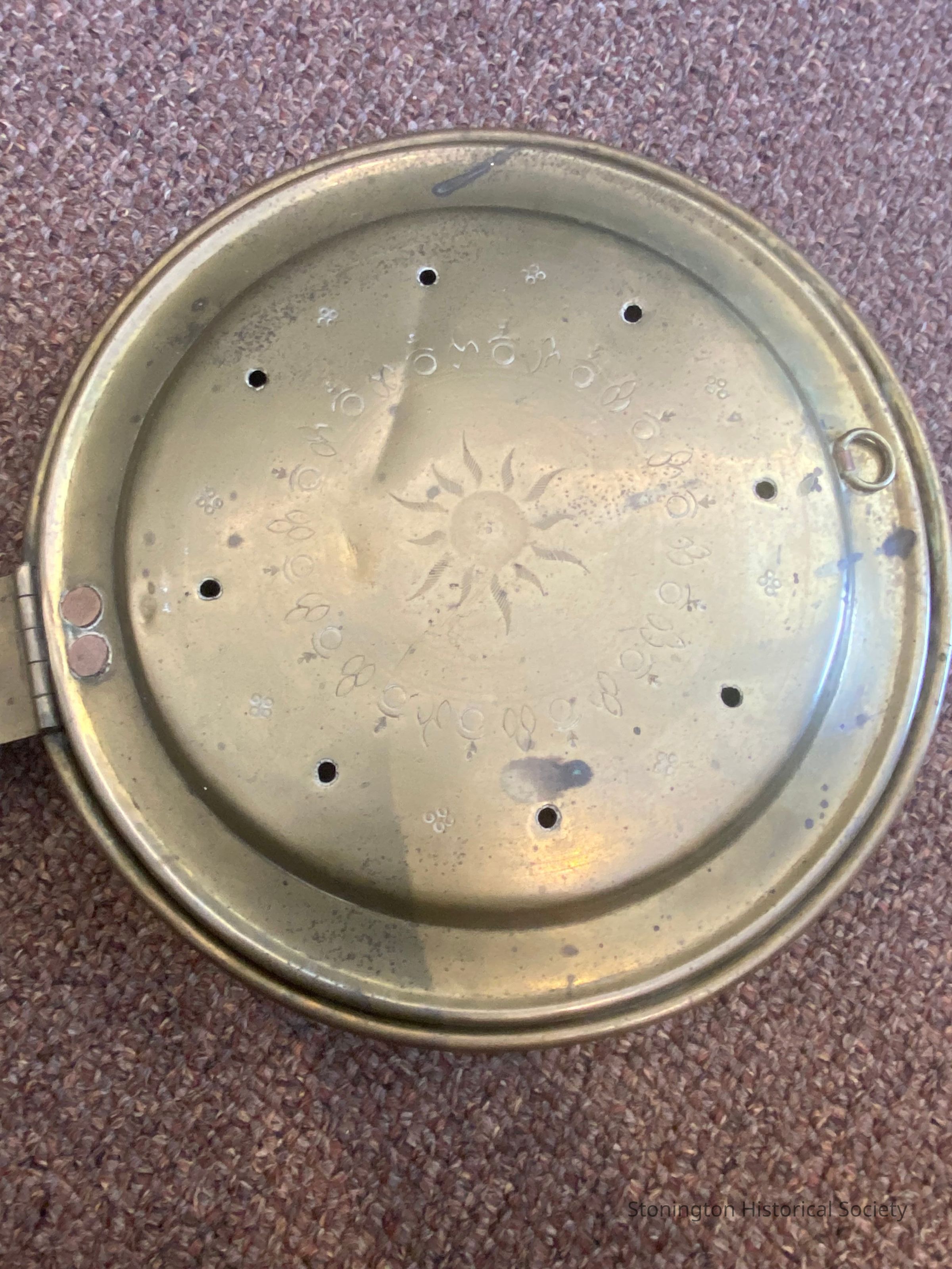 A bedwarmer passed down in the Randall family through at least four generations. The letter accompanying the bedwarmer included these generations: