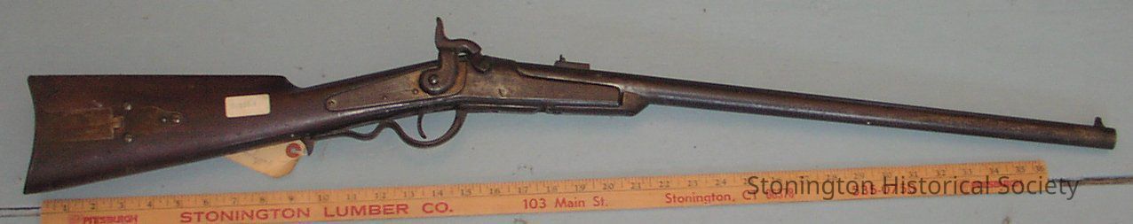 firearm, Civil War Carbine, serial number 14182. Inscriptions read "Gallager's Patent July 17th 1860" and "Manufactured by Richardson & Overman Philada." Barrel opens from breach to reload, Lever action.Collection