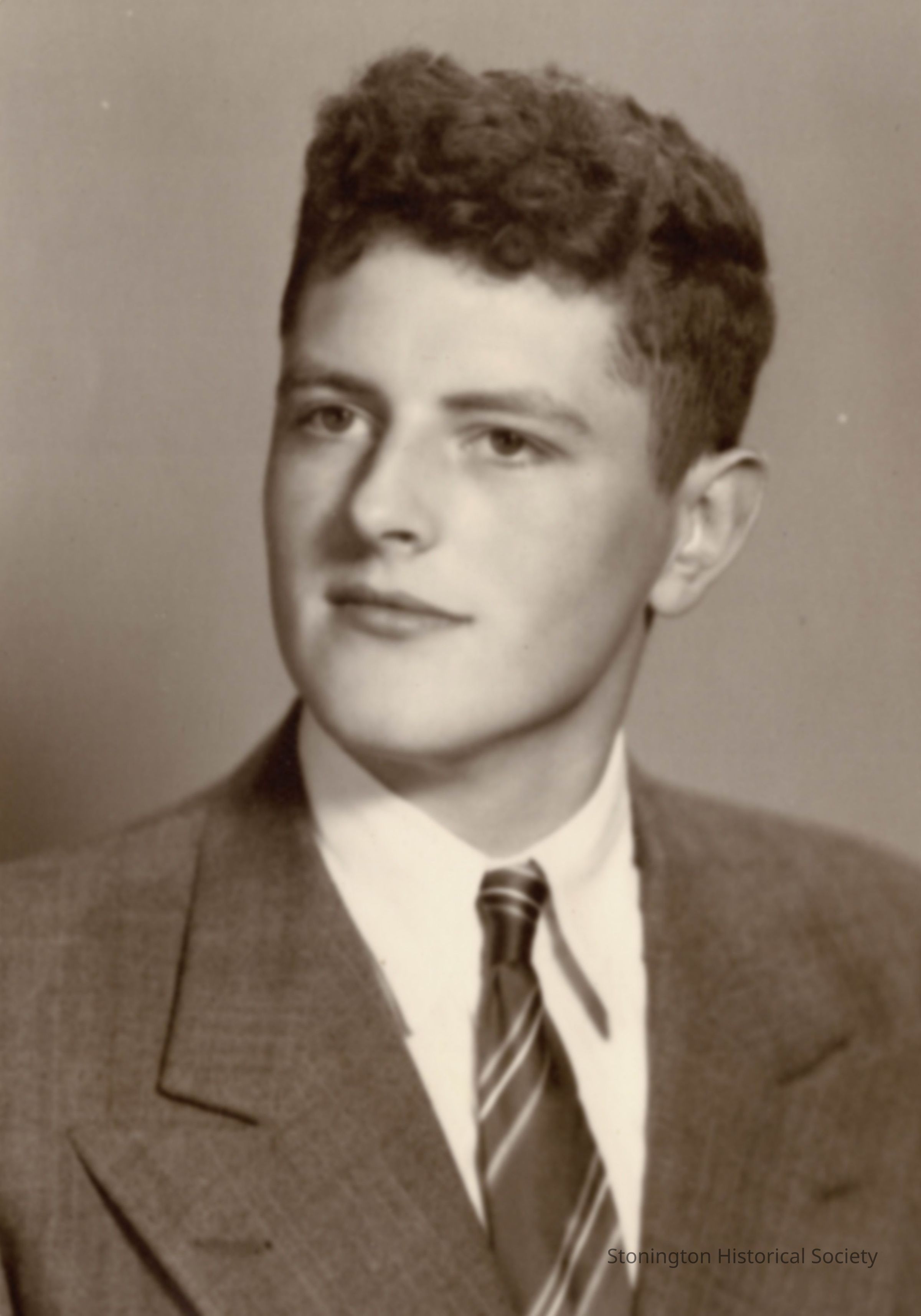 Senior portrait of Robert E. Meeker, Stonington High School class of 1949. He was on the cross country team, served as Vice President of his class, was a class representative, competed in drama, and was a member of the All-state band, and the high school orchestra. Two copies, both in cardboard frames.Collection