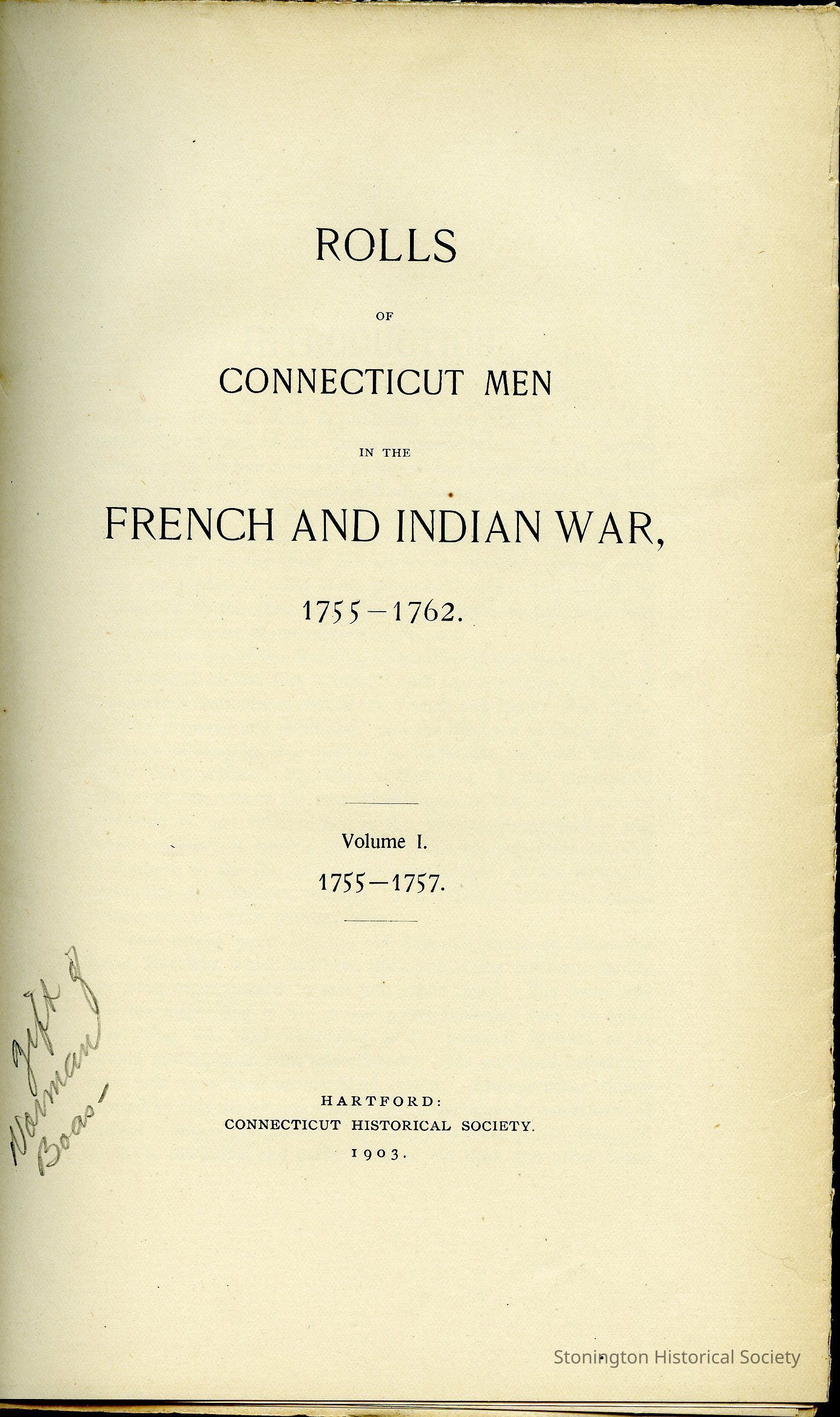 Rolls of Connecticut Men in the French and Indian War, 1755 - 1762.Entry/Object ID