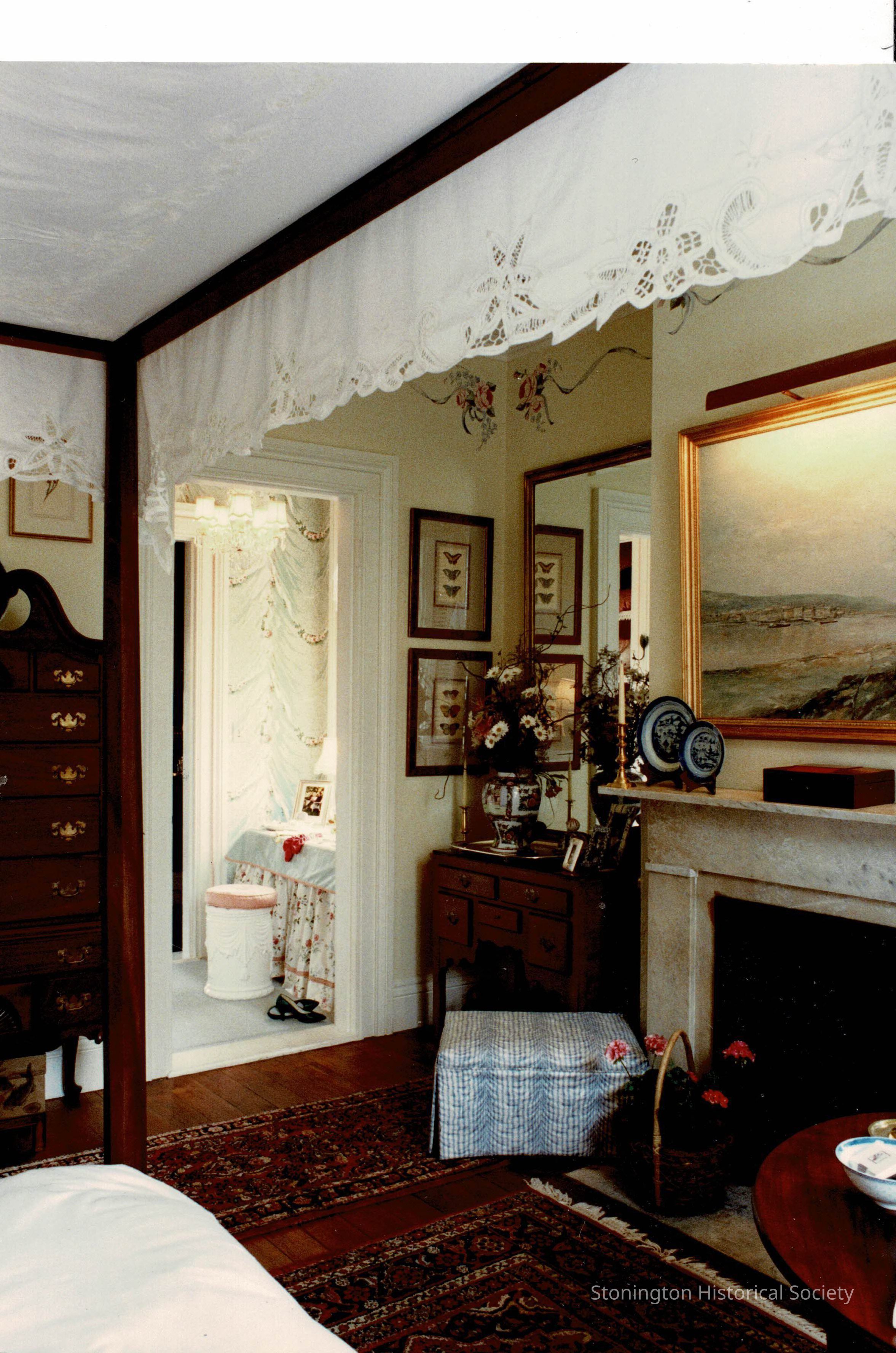 View of “Romantic Renaissance”, as it was decorated for the Designer’s Show House in 1989. This room was originally a bedroom for the sons of Alexander S. Palmer, when the home was completed in 1852. The room was reimagined in 1989 by Marlaine E. Bernier, ASID of Ledyard. As of 2024, this room was used as the textile processing room.Collection