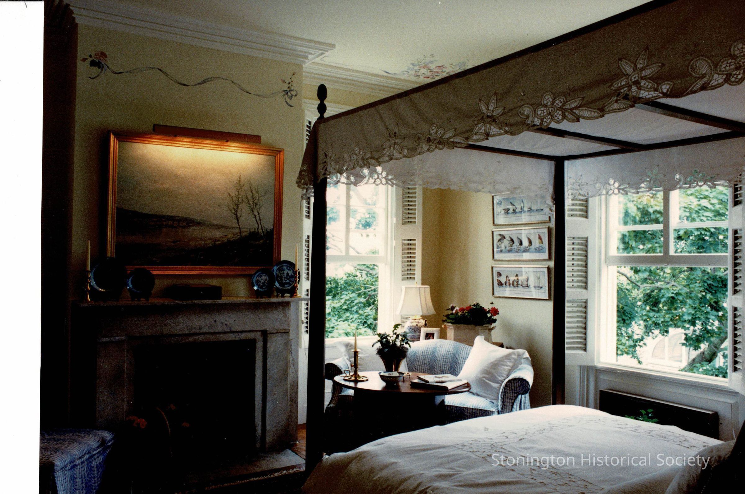 View of “Romantic Renaissance”, as it was decorated for the Designer’s Show House in 1989. This room was originally a bedroom for the sons of Alexander S. Palmer, when the home was completed in 1852. The room was reimagined in 1989 by Marlaine E. Bernier, ASID of Ledyard. As of 2024, this room was used as a textile processing space.Collection