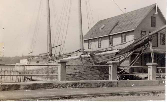 Small photo of schooner tied up at dock. Note on back states it is the Schooner "Regina" in later years.