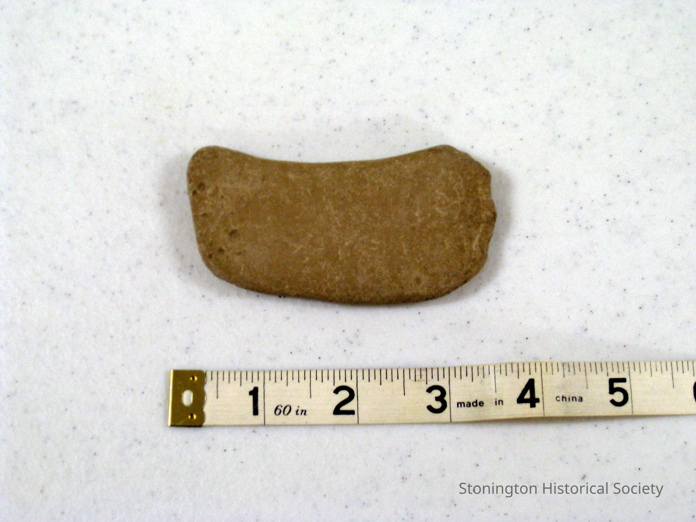 Stone used for scraping skins; 3 1/2" long, crescent shaped, brown graniteCollection