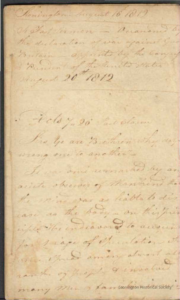 Sermon preached on the occasion of Declaration of War of 1812, Stonington