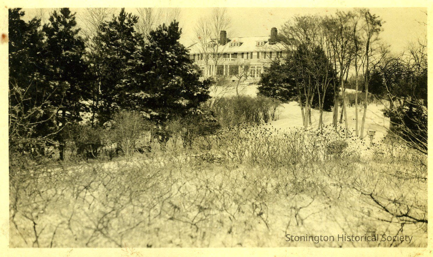 black and white photograph of the Shawondasee Estate, a summer residence built by sisters Margaret and Mary Dreier off Flanders Road in Stonington in 1904.Collection