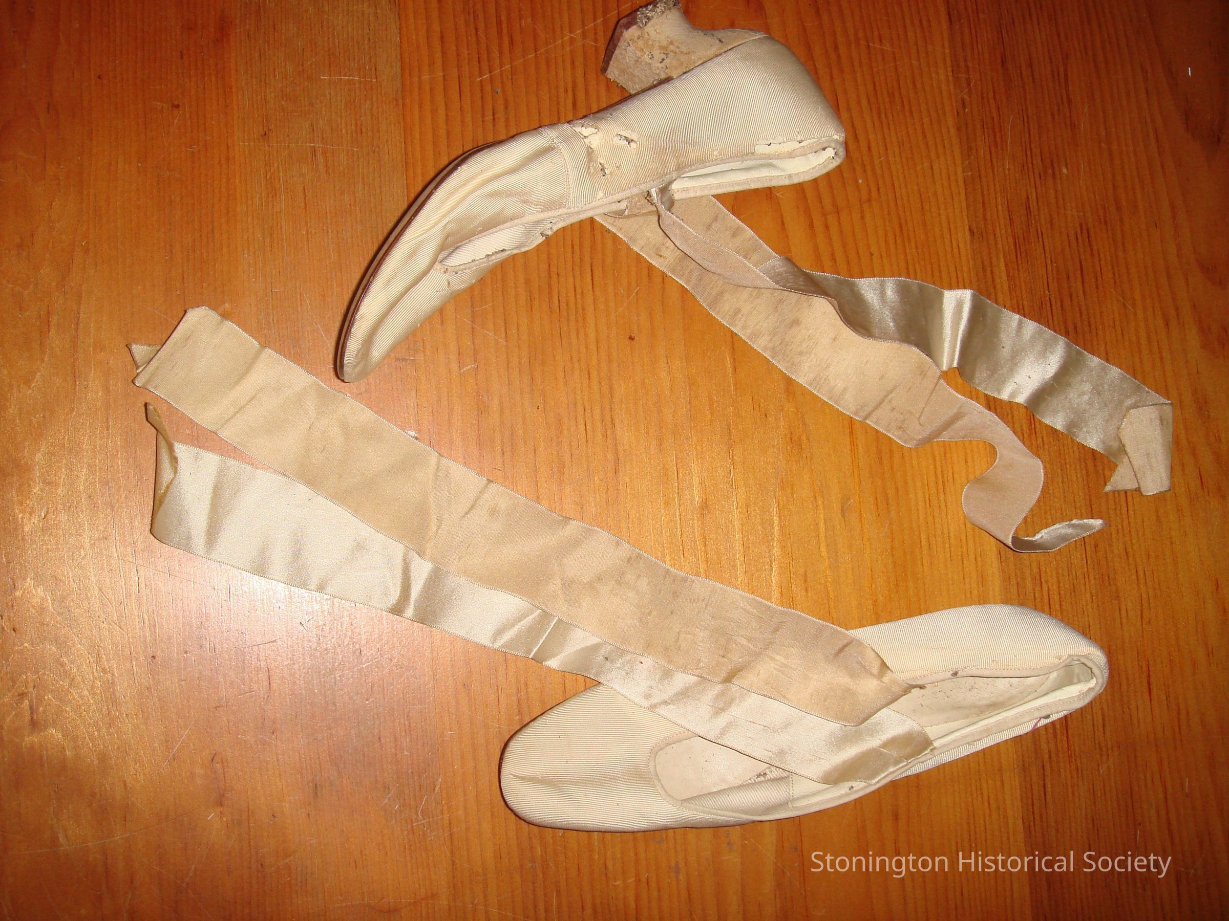 hand sewn to each shoe is a 14 X 1 1/2 inch cream satin ribbonsCollection