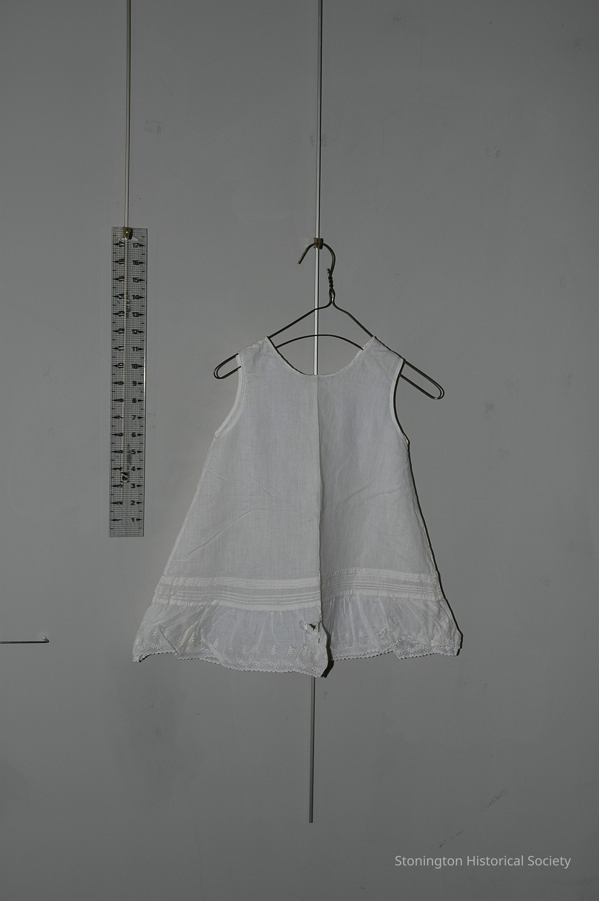 white cotton child's slip lace ruffle at hem and pleats