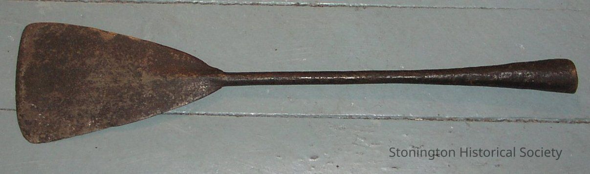 iron blubber spade with "GLASHES (?) CAST STEEL" stamped into the blade