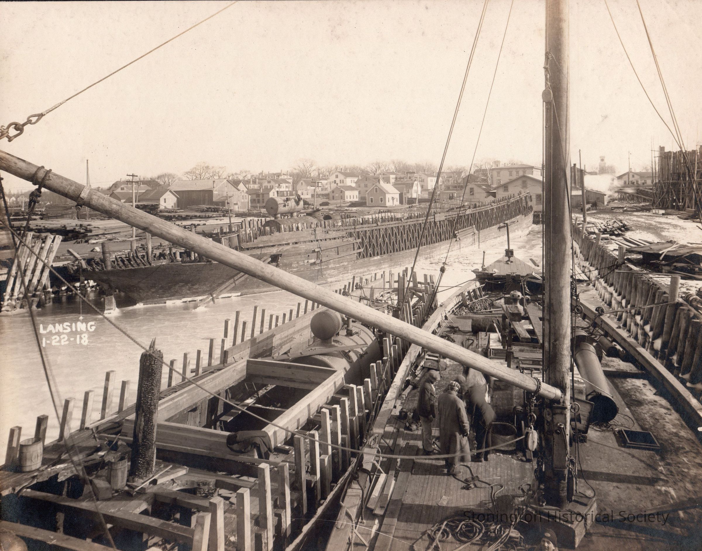 Collection of 25 photographs of the LANSING being rebuilt at the Stonington shipyard in 1918-1919 (re-launched May 20, 1919) for the Nafra Company. Includes an additional photograph of lunch at the Manor Inn, Stonington, May 20, 1919 and the construction of the ALTURA, February 25, 1919.Collection