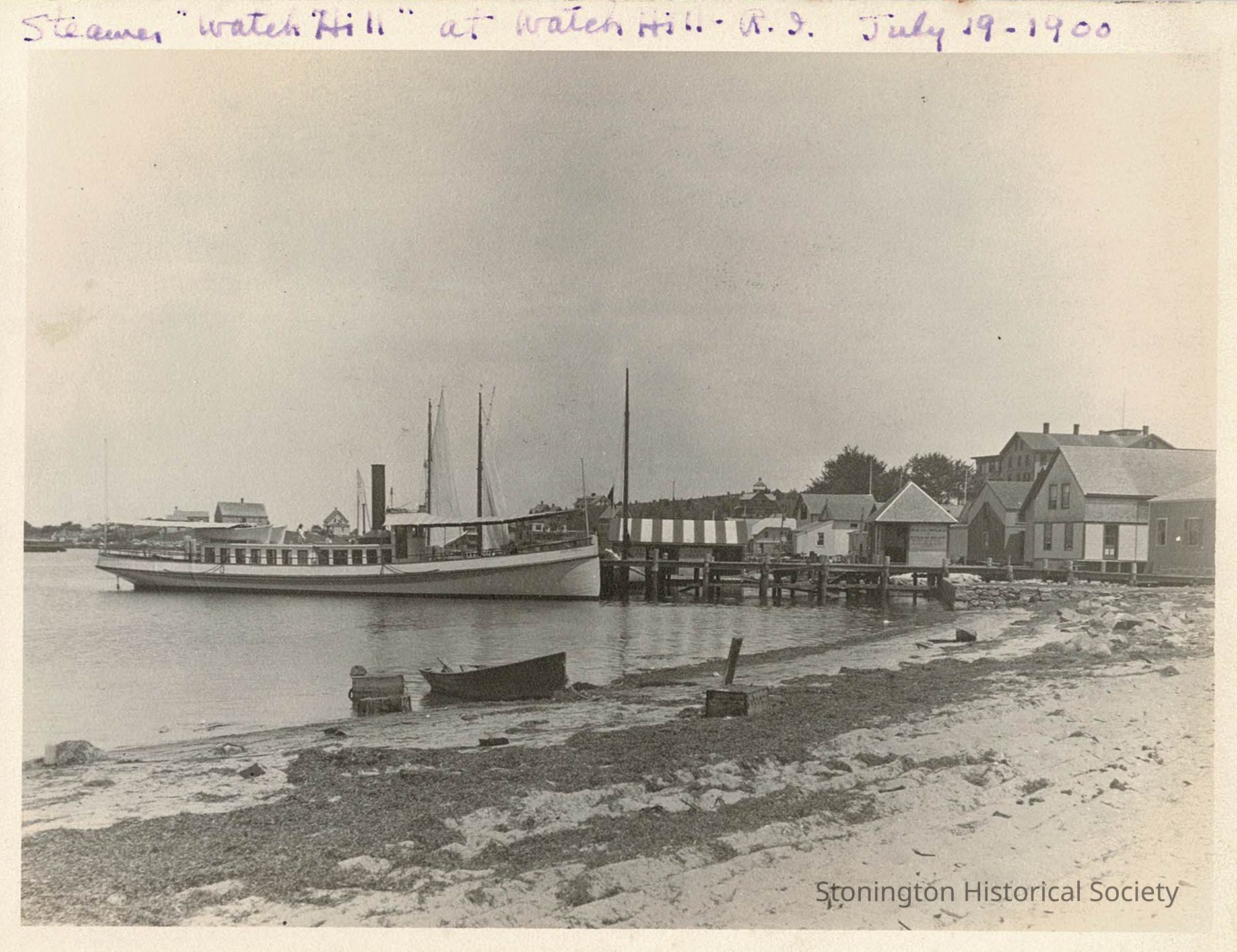 Image shows the "Watch Hill" at its home dock. You can see the tiny Railroad and Steamboat ticket office on the right.Collection