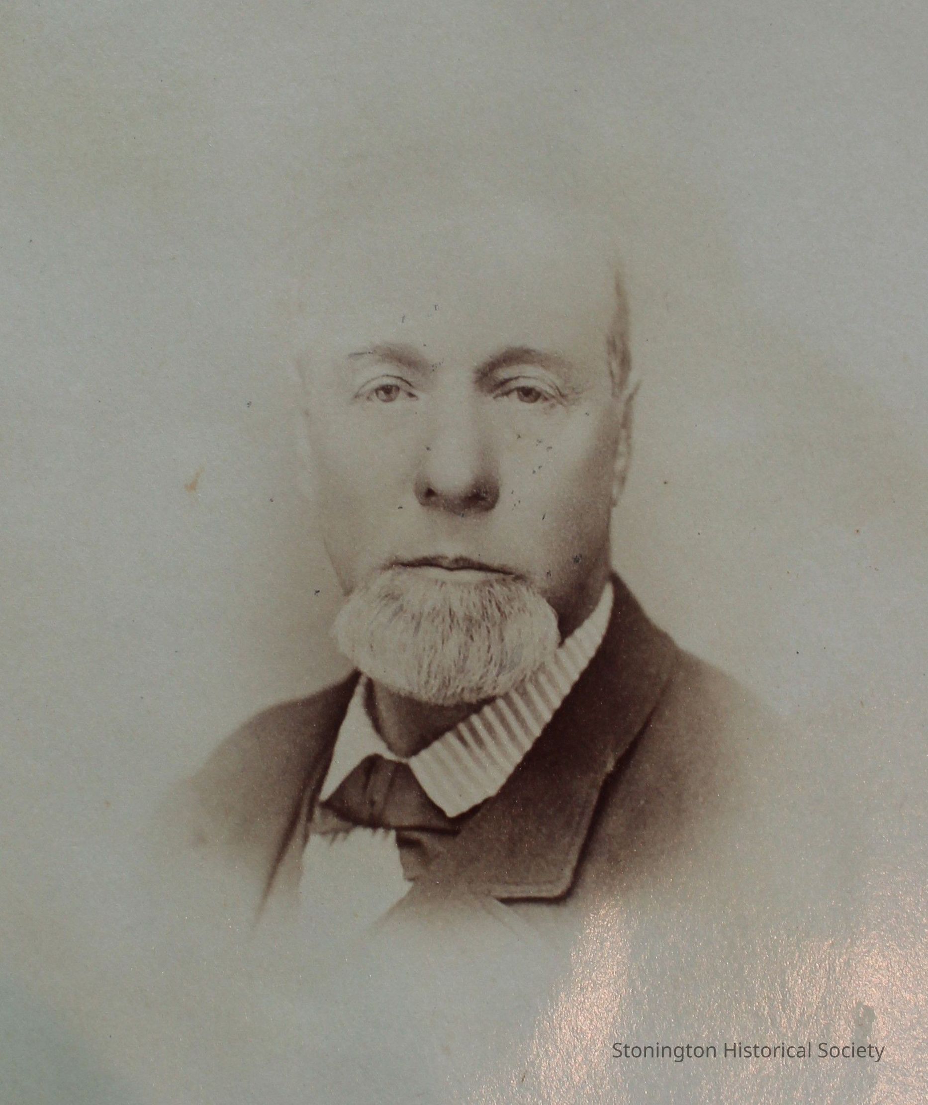 Photograph portrait Stephen A. Morey (1825 - 1889), chief mate of the steamer NARRAGANSETT, killed November 2, 1889 when dragged overboard by the anchor rope, from photograph album.Collection