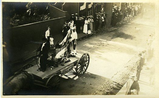 Stonington Battle Flag on back of horse-drawn wagon, going down Water Street