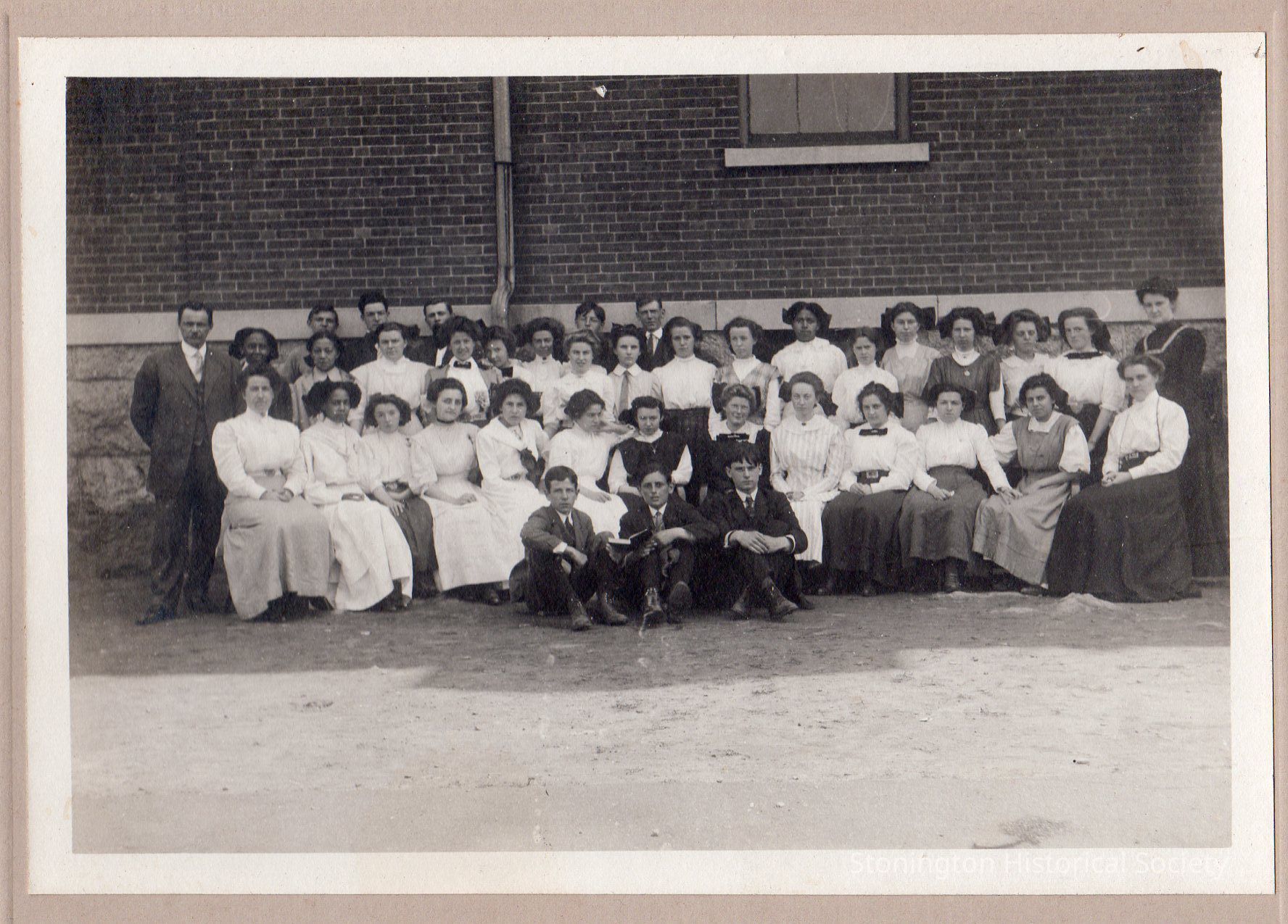 Black and white photograph of an unidentified class at the Stonington Borough School. Some of the same students are visible in 2023.216.96.