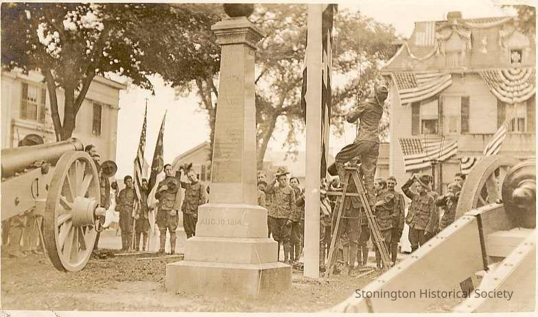 Parade for Battle of Stonington Celebration, 1914 with Stonington Boy Scouts facing south at Cannon Square