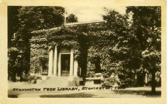 Stonington Free Library, covered in ivy, on Wadawanuck Square