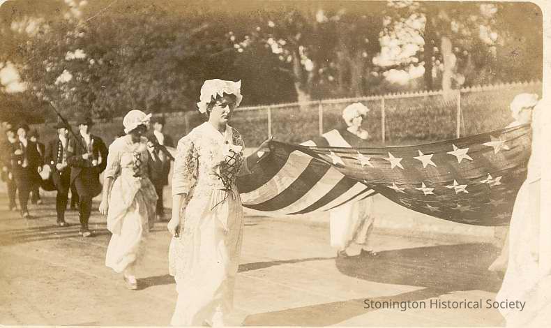 Stonington girls carrying American flag during parade, Water Street, Stonington CTEntry/Object ID
