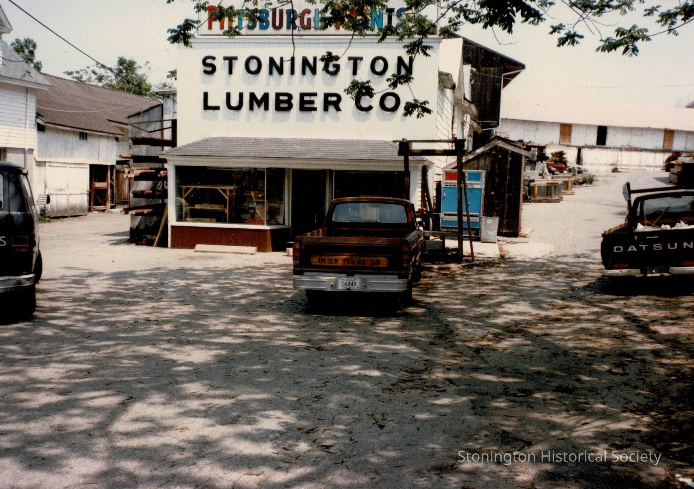 Color photograph of the front of Stonington Lumber Company on Main Street in Stonington Borough. The business was started in 1929 by Andrew Wheaton Perry (1867-1948) and his son, Burrows Perry (1897-1990). It was closed and sold to developers in the summer of 2006.Collection