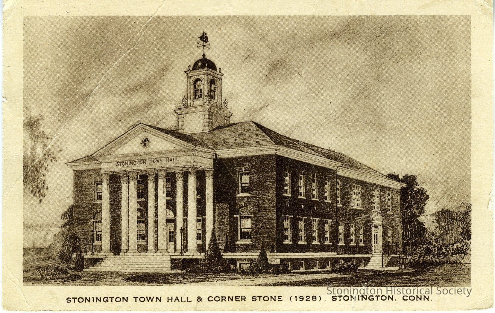 Stonington Town Hall and Corner Stone on Elm Street (1928)