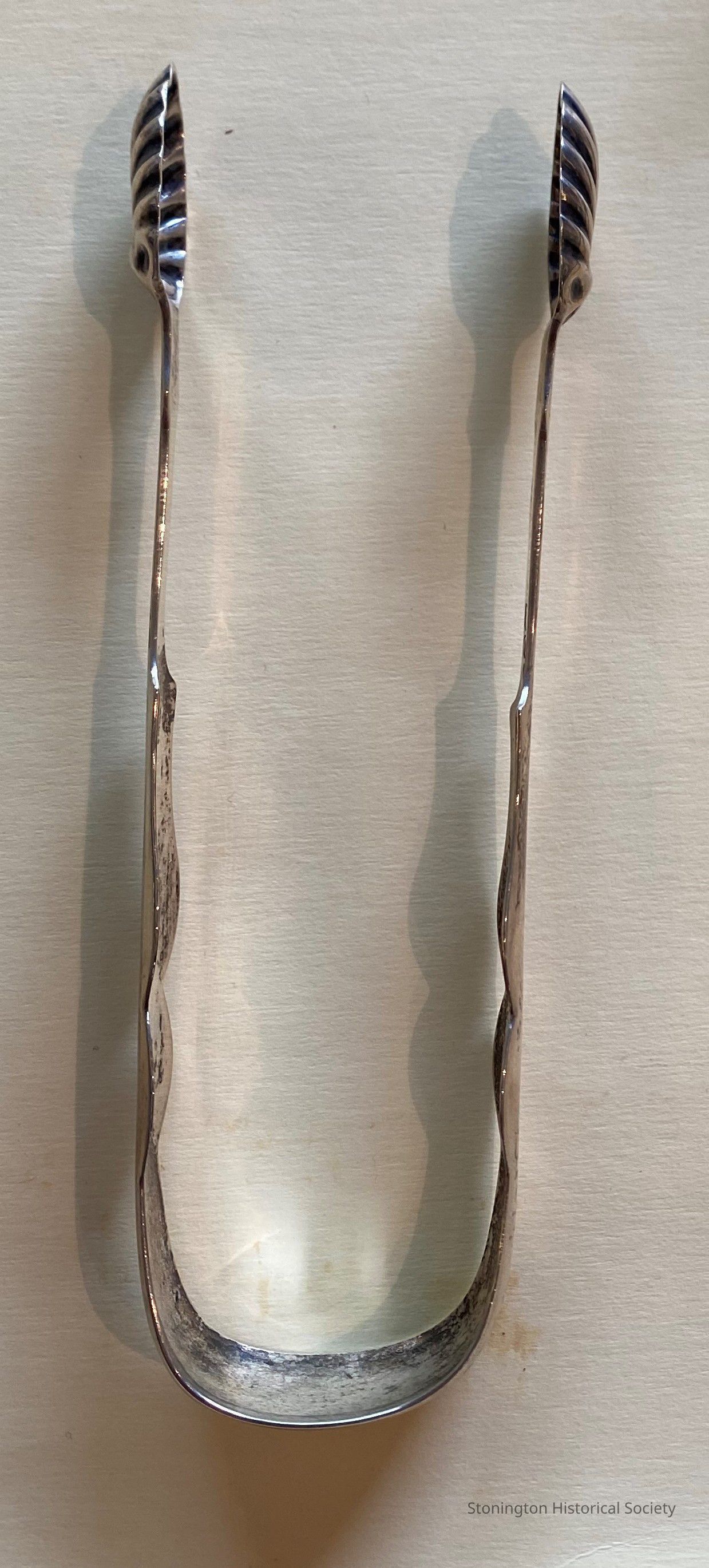 A.H. Cook & Son silver sugar tongs with scallop shell design. Initials (H.W.C.?) engraved