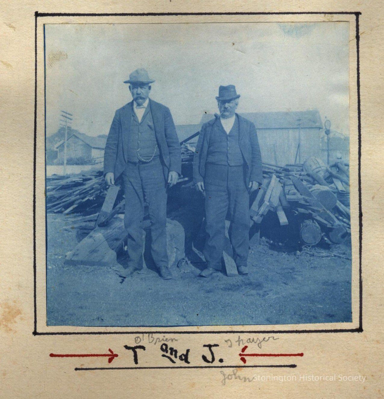Cyanotype print of T[ommy] O'Brien and John Thayer, T and J