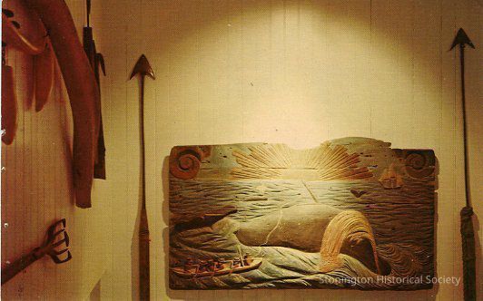 "Colorful tailpiece of Whaleship MARY & SUSAN which sailed out of the Port of STonington CT. This view is part of an exhibit at the Lighthouse Museum..."