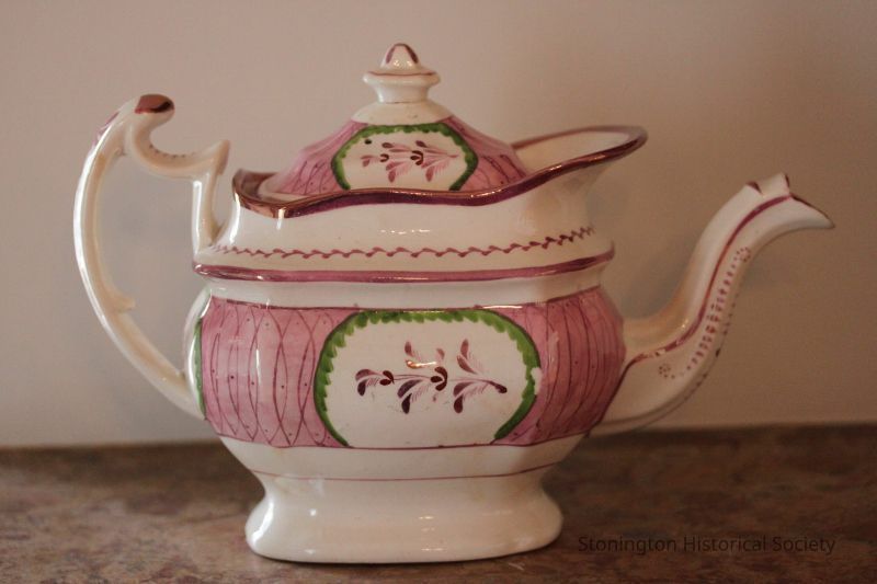 Pink Lusterware (w/green) teapot with lid.