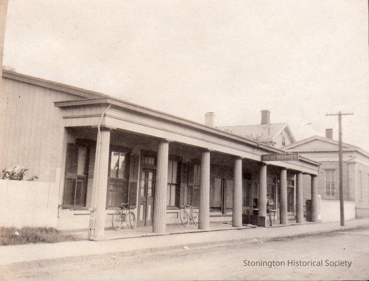 Black and white photograph of the Arcade, Water Street, Stonington.