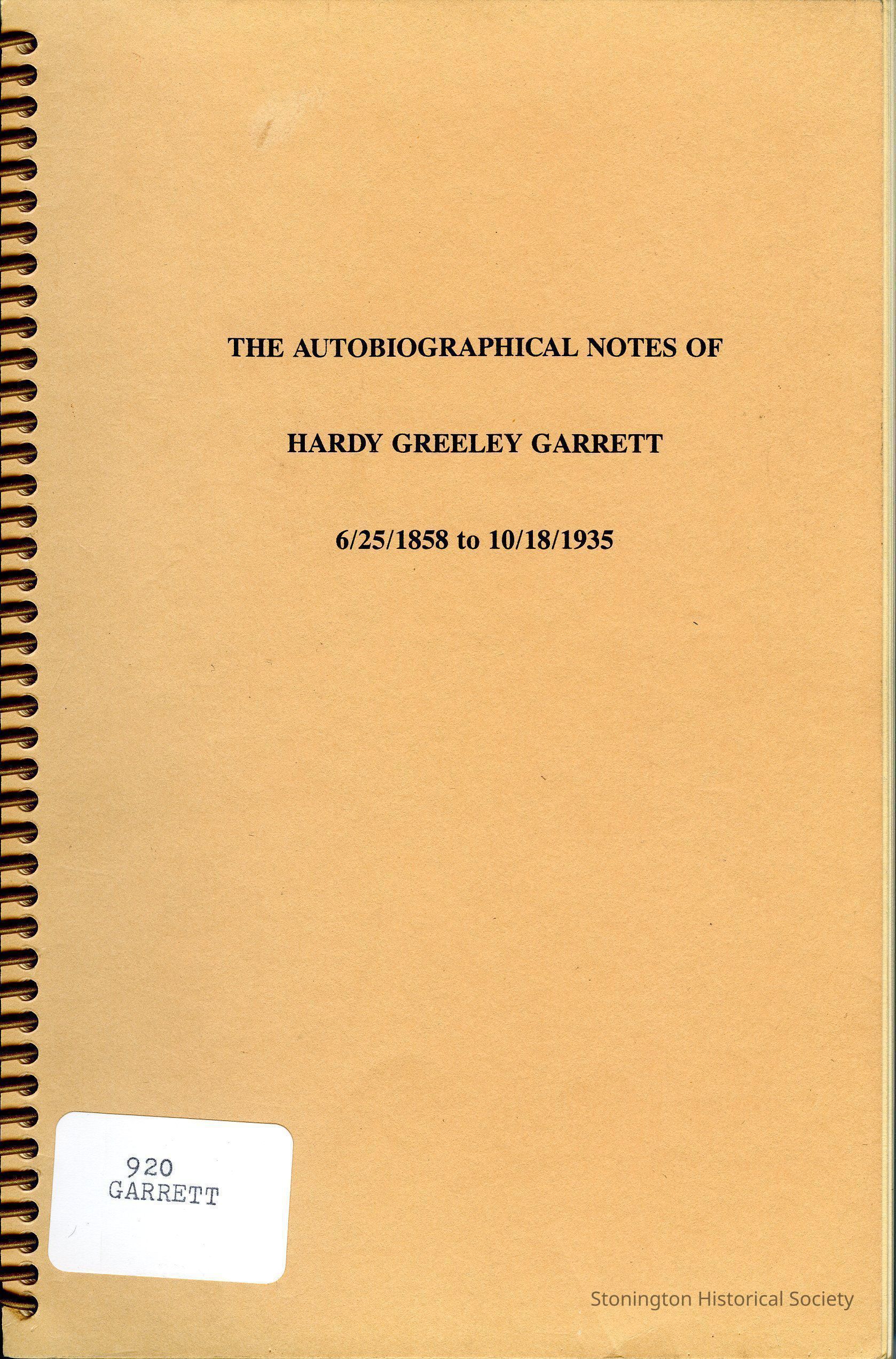 The Autobiographical Notes of Hardy Greeley Garrett, 6/25/1858 to 10/18/1935Entry/Object ID
