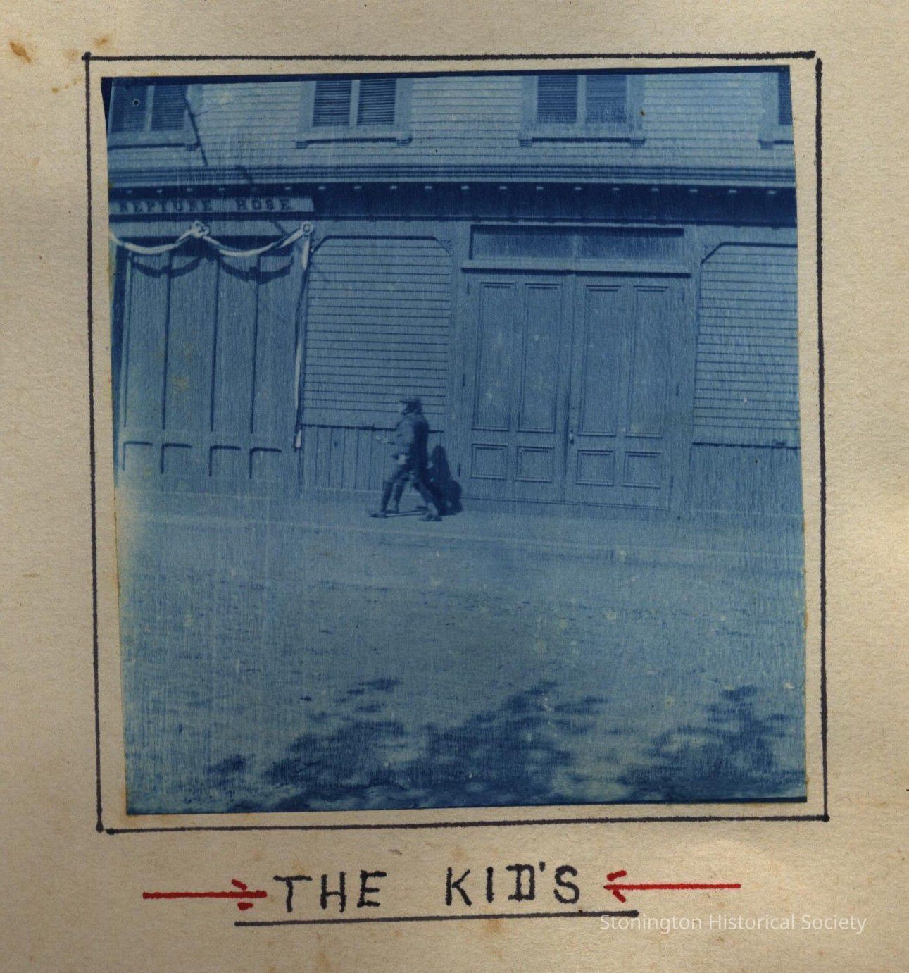 Cyanotype print of "The Kids" in front of Neptune Hose Firehouse
