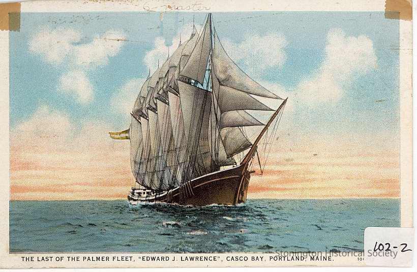 Postcard of "Edward J. Lawrence", the last of the Palmer fleet in Casco Bay, Portland ME