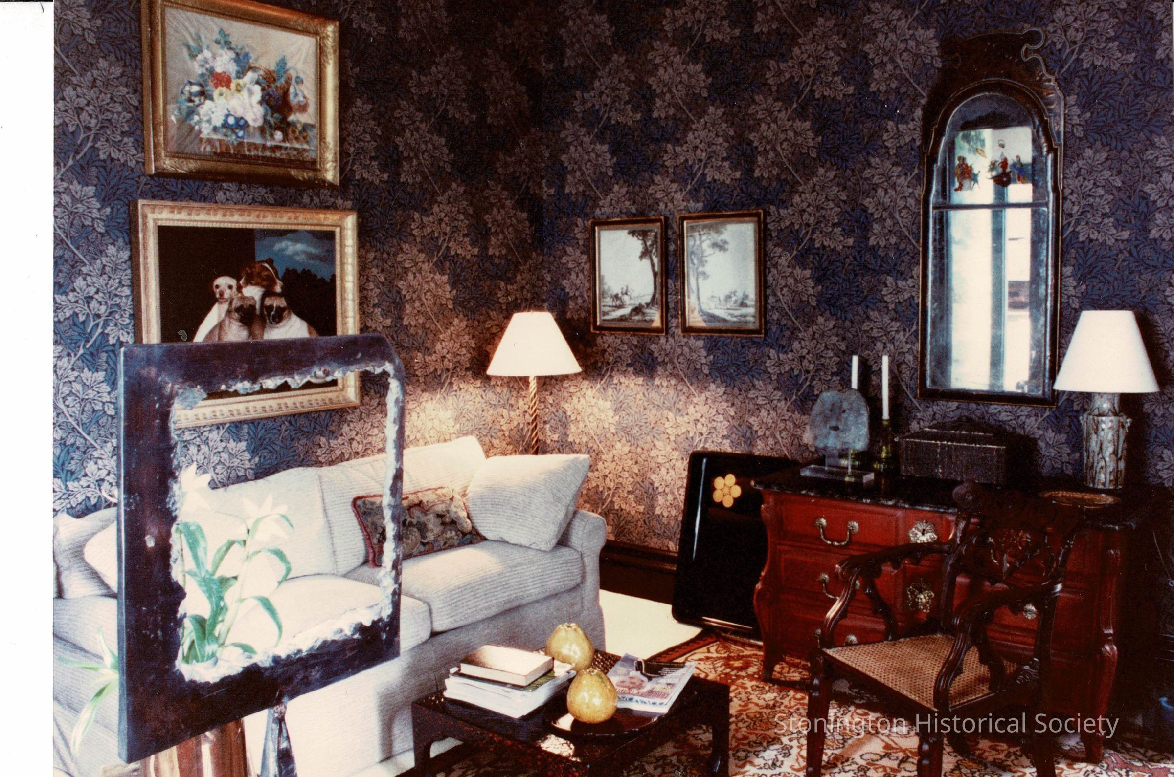 A view of the "Library", as imagined by the Designer's Show House in 1989. This room in the Captain Nathaniel Brown Palmer House originally served as his bedroom (1852), but was reimagined by design firm Melvin Dwork, Inc of New York.Collection