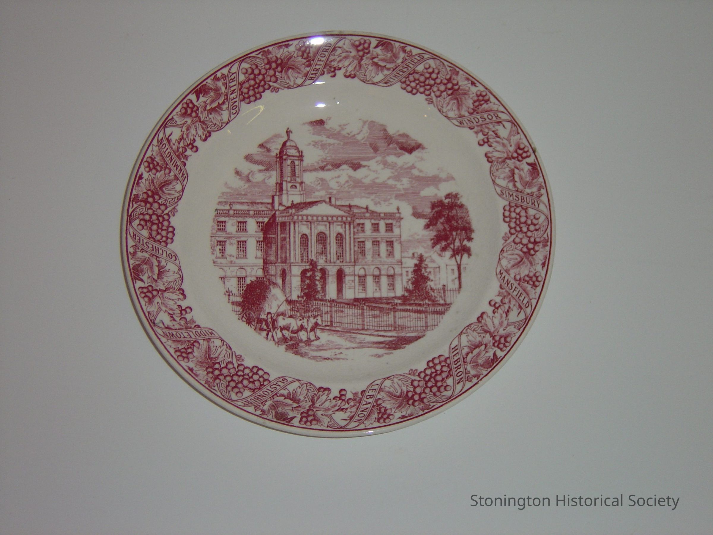 CT tercentiary dinner plate, red & white, Old State House, Hartford, designed by Frederick Dunn
