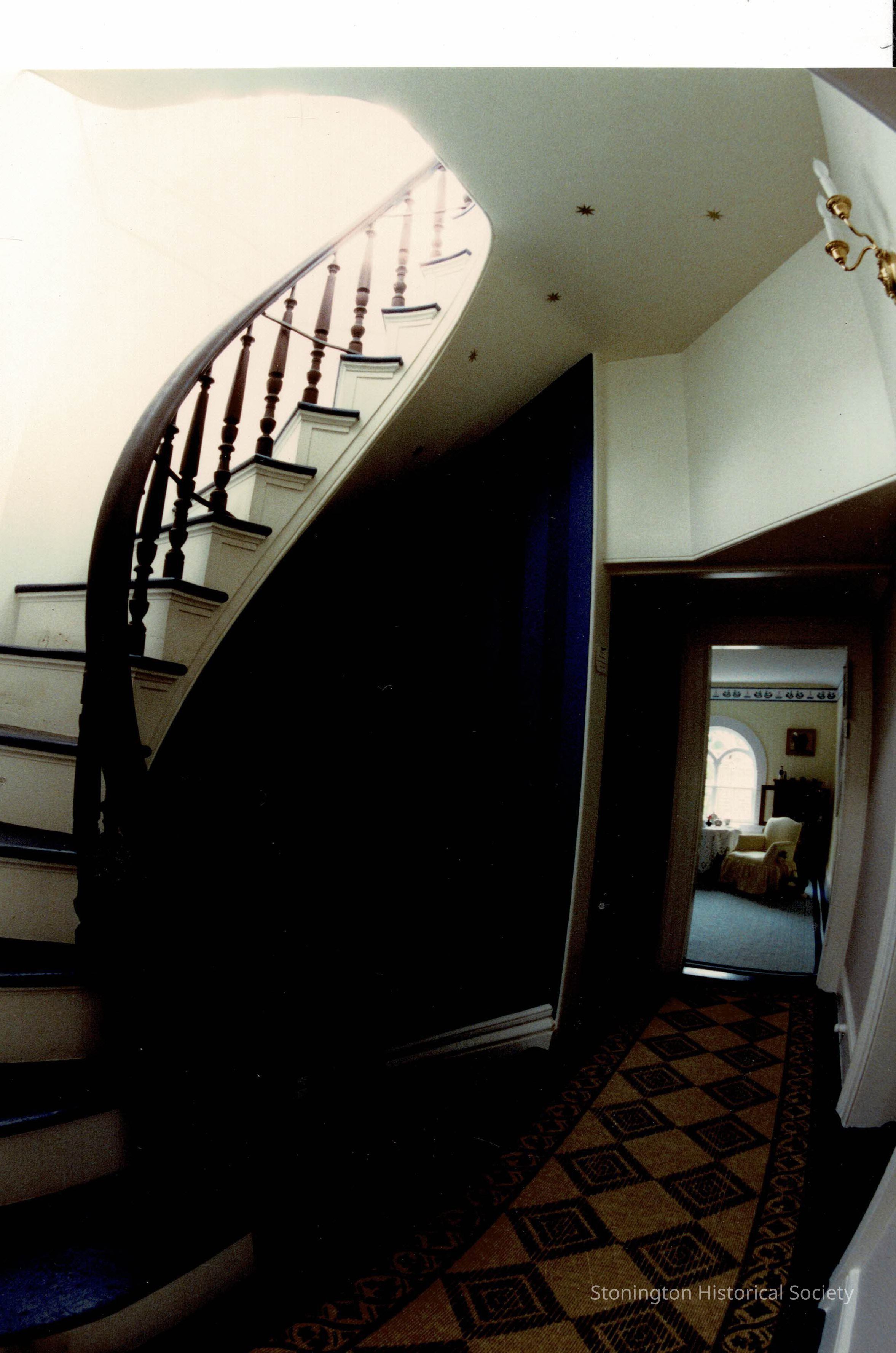 A view of the third floor landing of the Captain N.B. Palmer house, as it was decorated for the Designer's Show House in 1989. The stairs on the left are leading up to the cupola.Collection