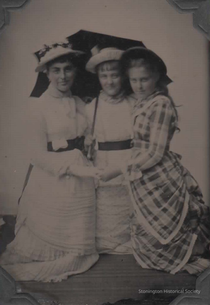 Tintype, "Elise Holmes (Mrs. Robert Mallory), Lousie Trumbull, Lucy Robinson (dau. Henry Robinson)."