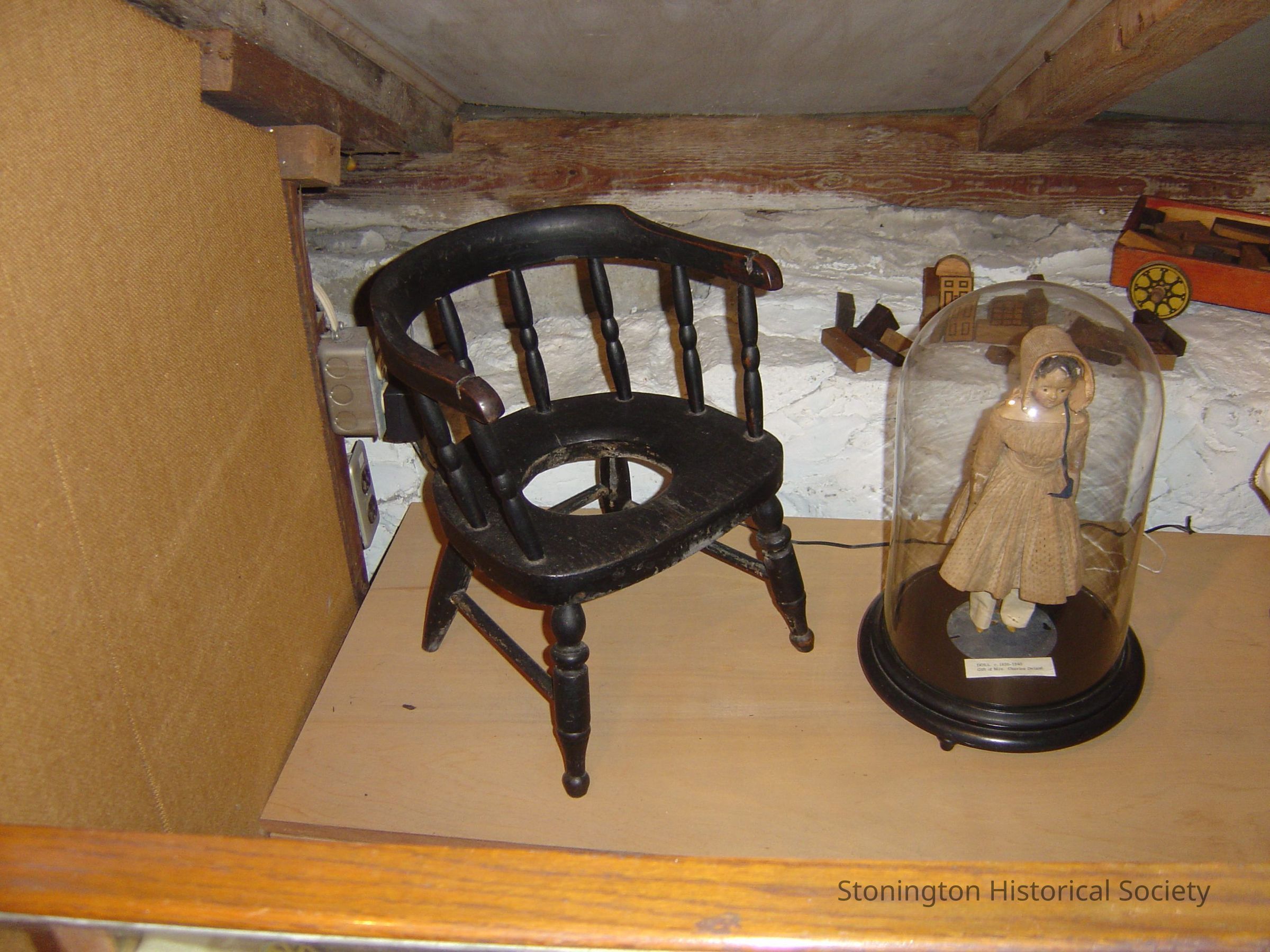 child's toilet chair, painted black, Captain's style, hole in seat, red cushion