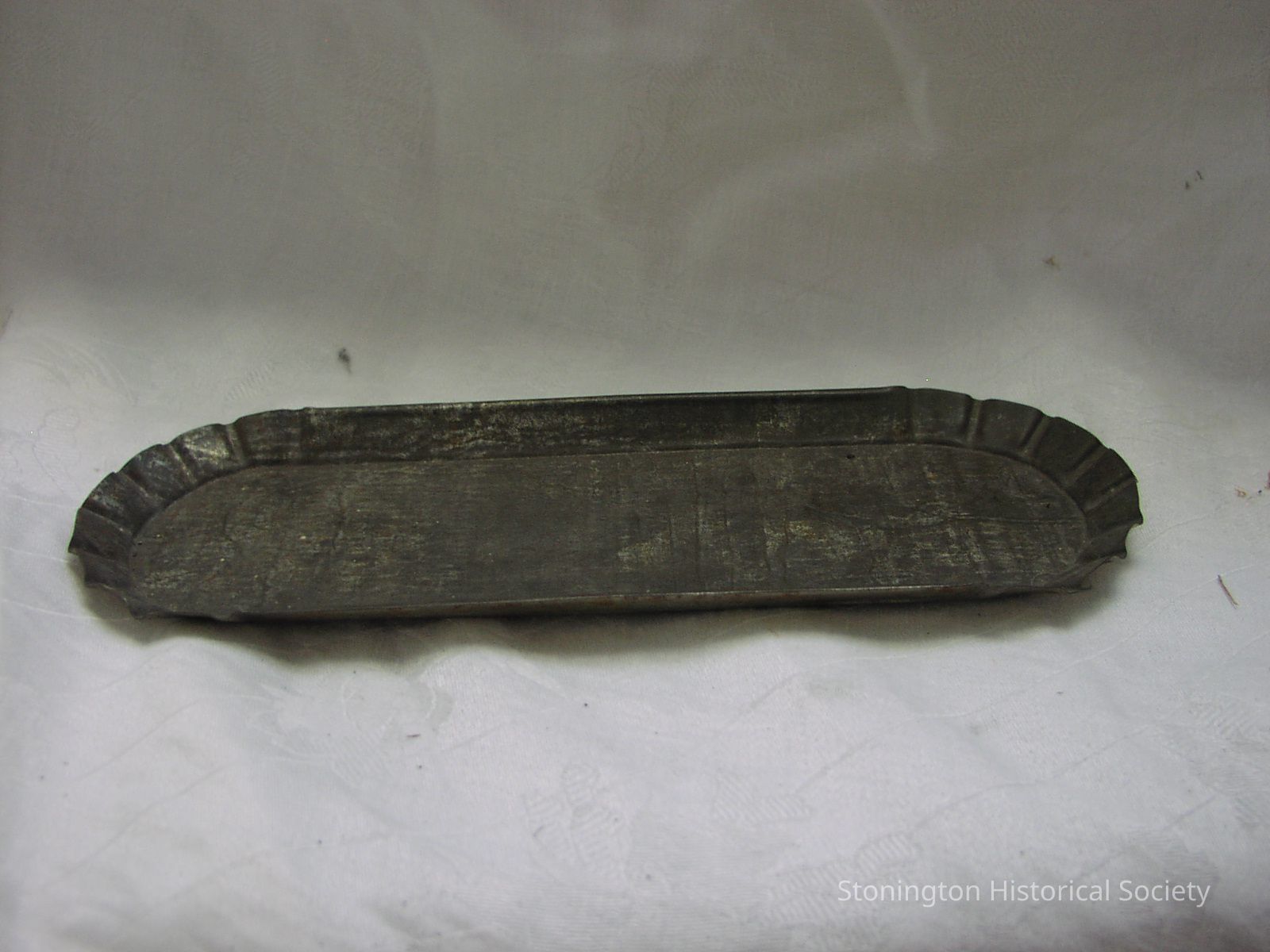 Steel, tin plated rectangular tray used to hold wick trimming "scissors." Tin finish darkened.