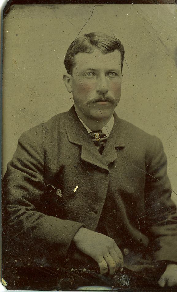 Unknown man in chair with mustache and light hair.Collection