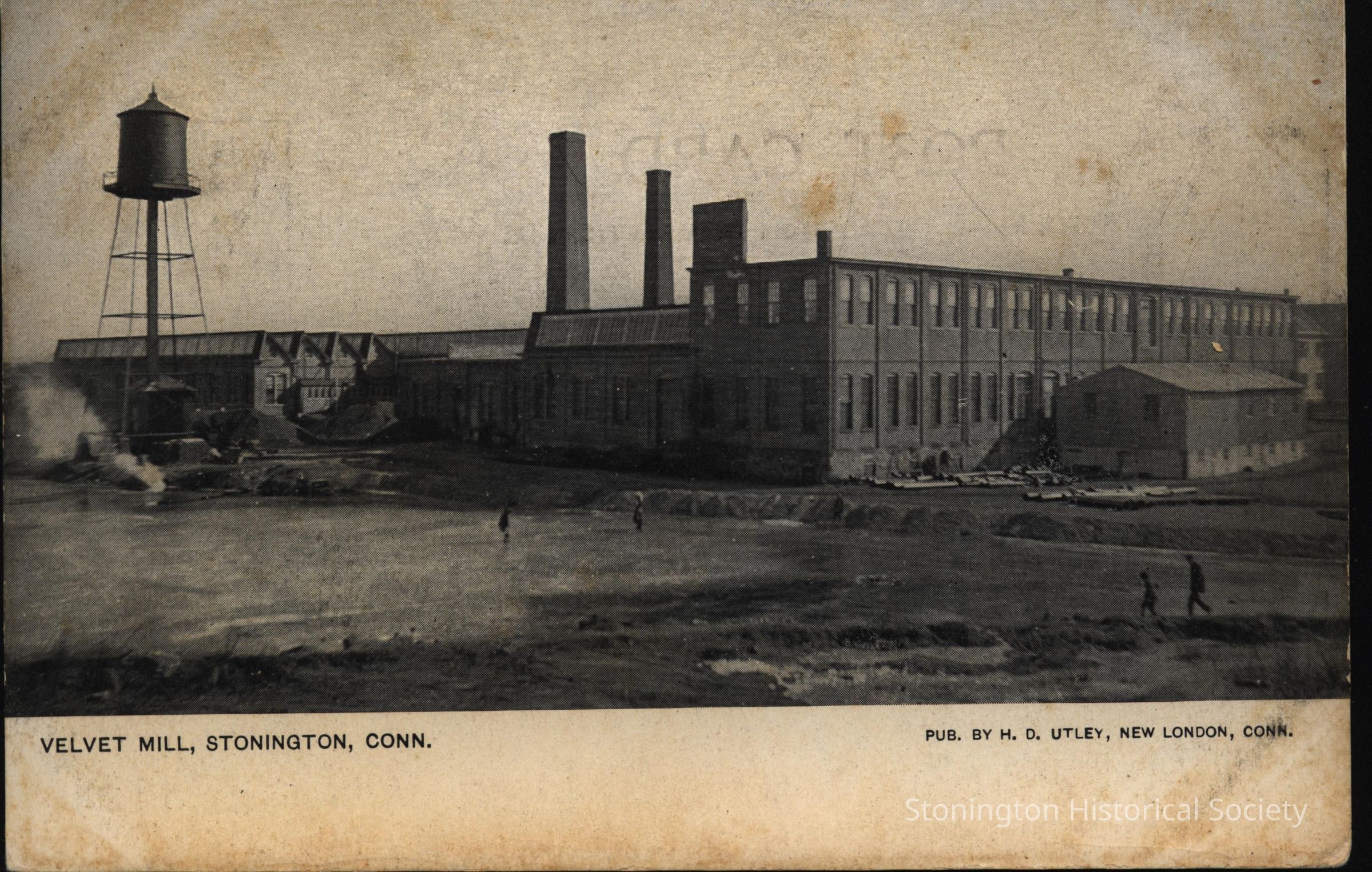 Black and White postcard of the Velvet Mill in Stonington CT. Also known as the American Velvet Mill and Wimpheimer's