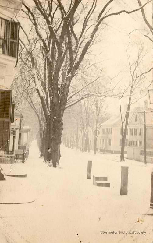 Stonington in the snow looking south from Main and High Streets