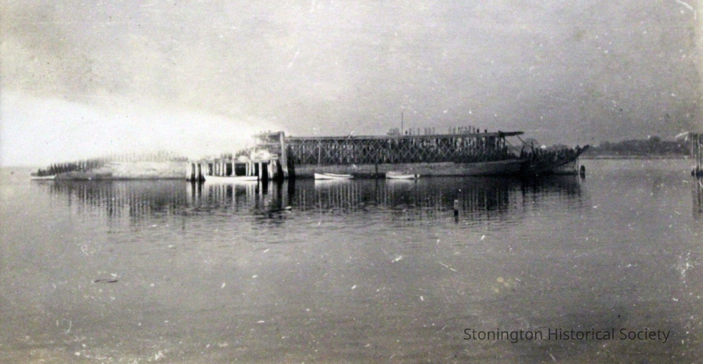 The SS Lansing in Stonington Harbor, as it was being rebuilt by the Ship Construction and Trading Company, Inc. 1918.Made/Created