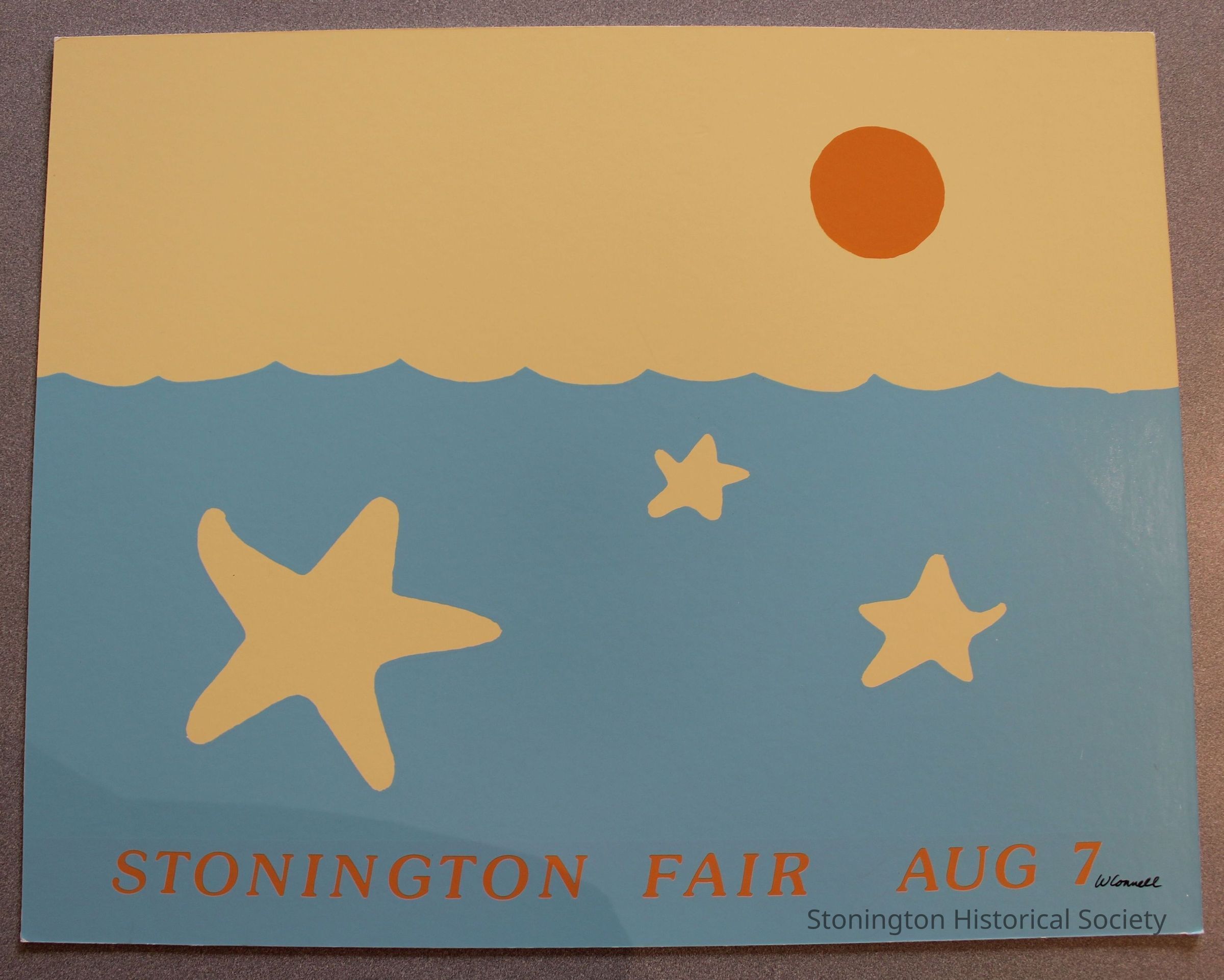 Three yellow starfish underwater with a sun at top right.Subject Person