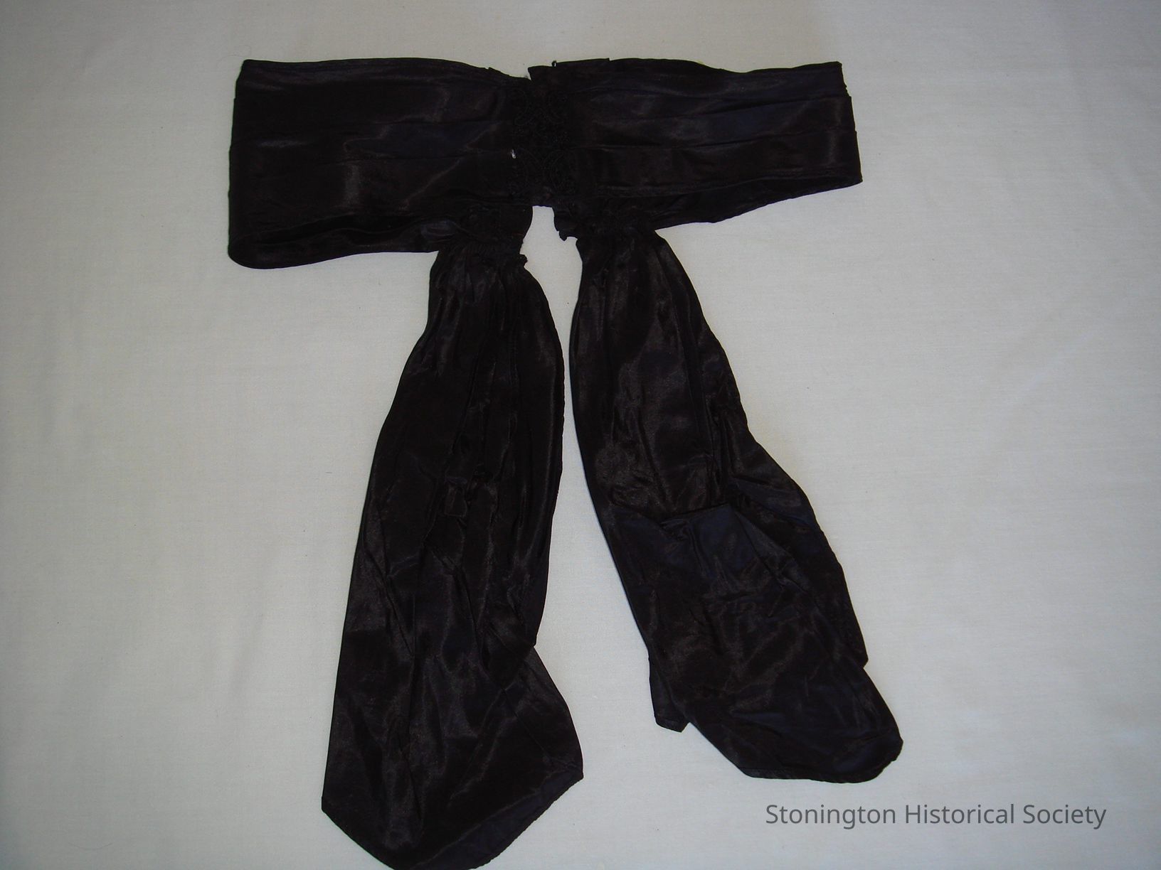 black cotton lace decoration at mid front, at closure in back and on tails of bowl-like fabricCollection