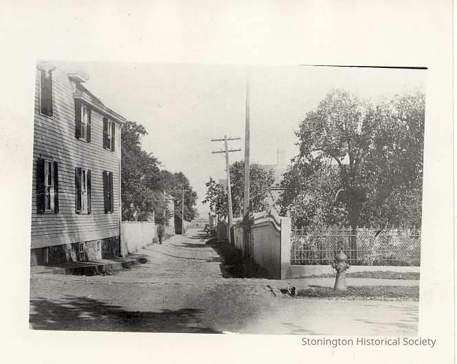 Wall Street before 1938 hurricane. de Moura house on left, 23 Main Street
