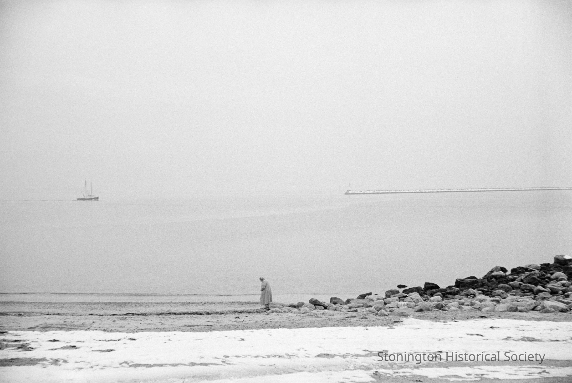 This picture is of an old woman, walking alone on duBois beach in winter.Collection